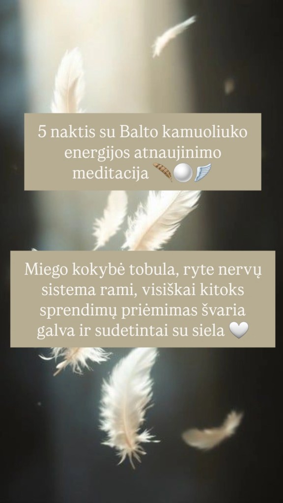 Meditacija Baltas kamuoliukas yra skirta: energijos išvalymui, jėgų ir vidinės būsenos atstatymui, viso kūno atpalaidavimui, miego kokybės gerinimui. 🤍