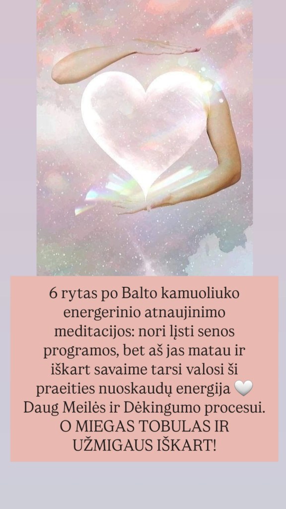 Sulaukiu klausimų: ar galima šią meditaciją kartoti daugiau nei 1 kartą per dieną? Mano atsakymas jums: tikrai taip, tiek kiek jaučiate, kad reikia. Galima netgi klausyti keletą kartų iš eilės.